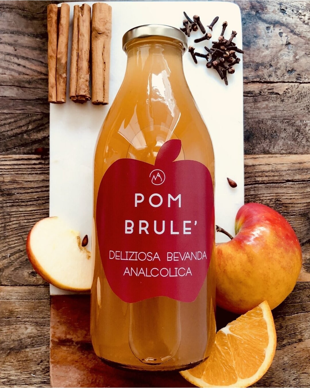 – 1 Pom Brulé succo di mela con cannella, succo d’arancia e chiodi di garofano