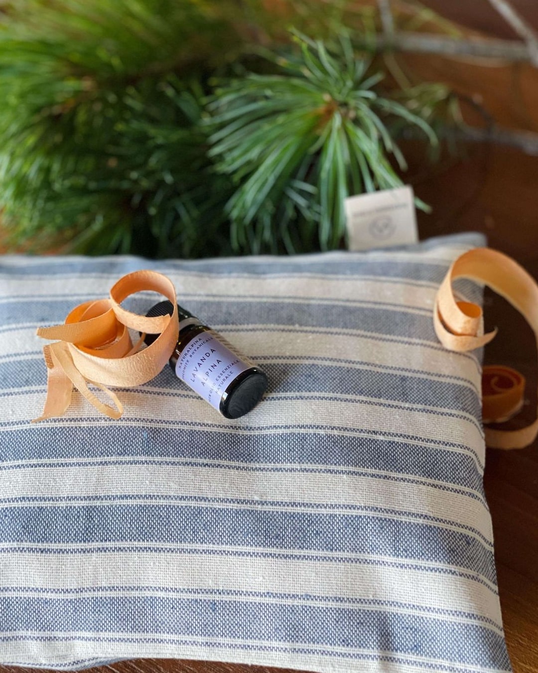 Il kit fragranza è una confezione regalo, ideale per profumare e decorare in modo completamente naturale l’ambiente. Contiene – 1 olio essenziale puro di lavanda alpina 5ml, dal nostro giardino aromatico – 1 cuscino 20x25cm in tessuti particolari che possono variare, imbottito con trucioli di cirmolo e fiori della nostra lavanda alpina Lavanda e pino cembro contengono essenze particolarmente rilassanti e distensive, il cuscino confezionato a mano, conserva a lungo il suo profumo, che si può intensificare o rinnovare instillando qualche goccia di olio essenziale direttamente sul cotone della fodera interna.