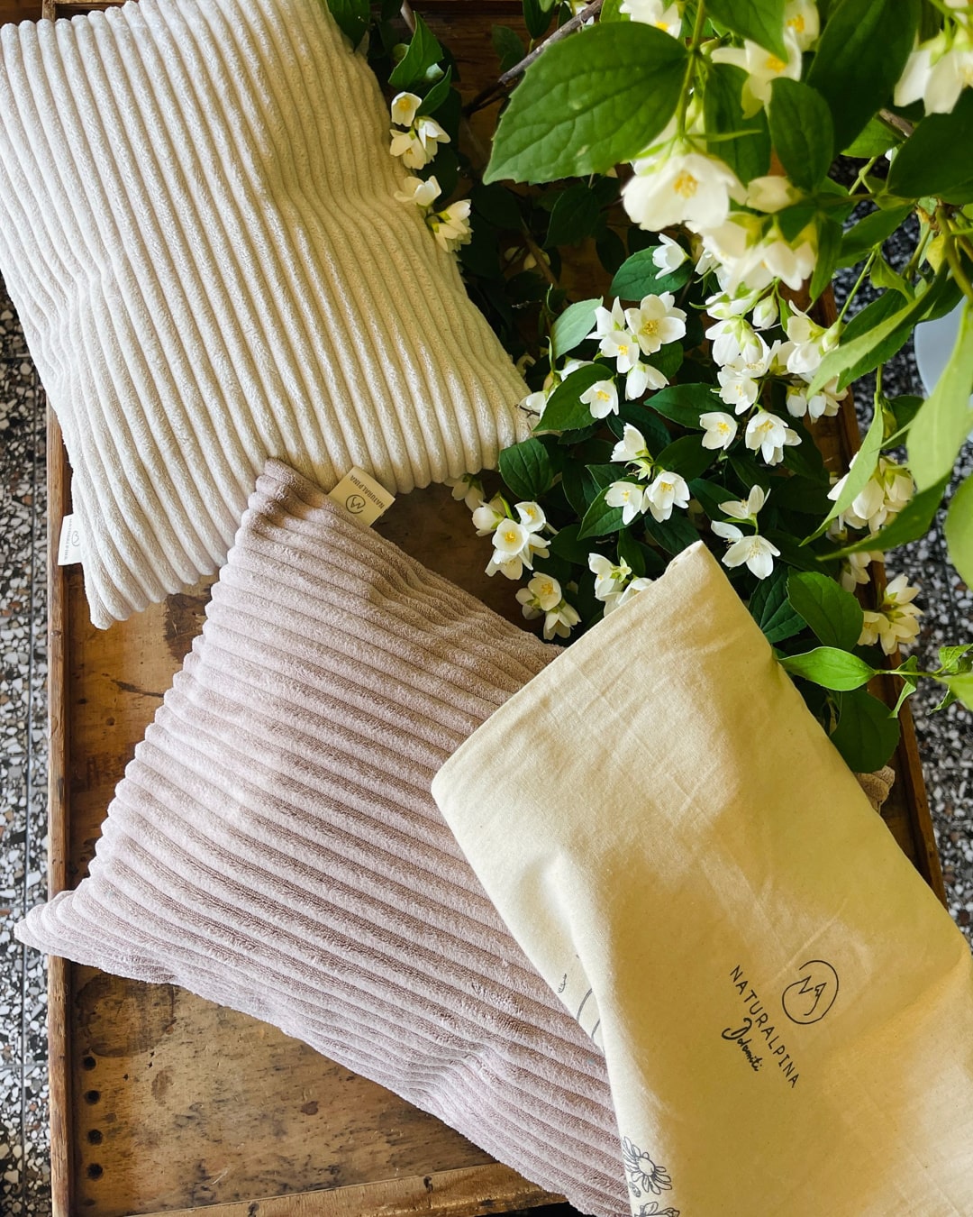 Ogni prodotto è realizzato a mano con cura e passione. I cuscini di pino cembro sono pezzi unici che uniscono tradizione artigianale e materiali naturali del territorio dolomitico.